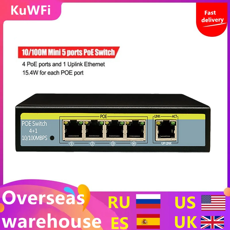Best . (20% Off) Buy 5 Port 10 100Mbps Network Switch 802.3af 52V Switch For Lift IP Camera 4POE Ports and 1 Uplink Ethernet Support Extend 250m Cheap Online.