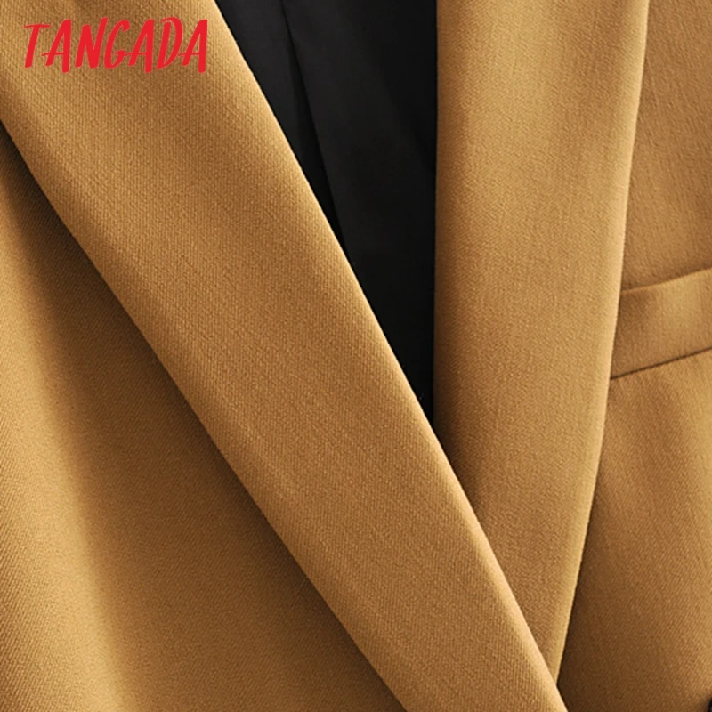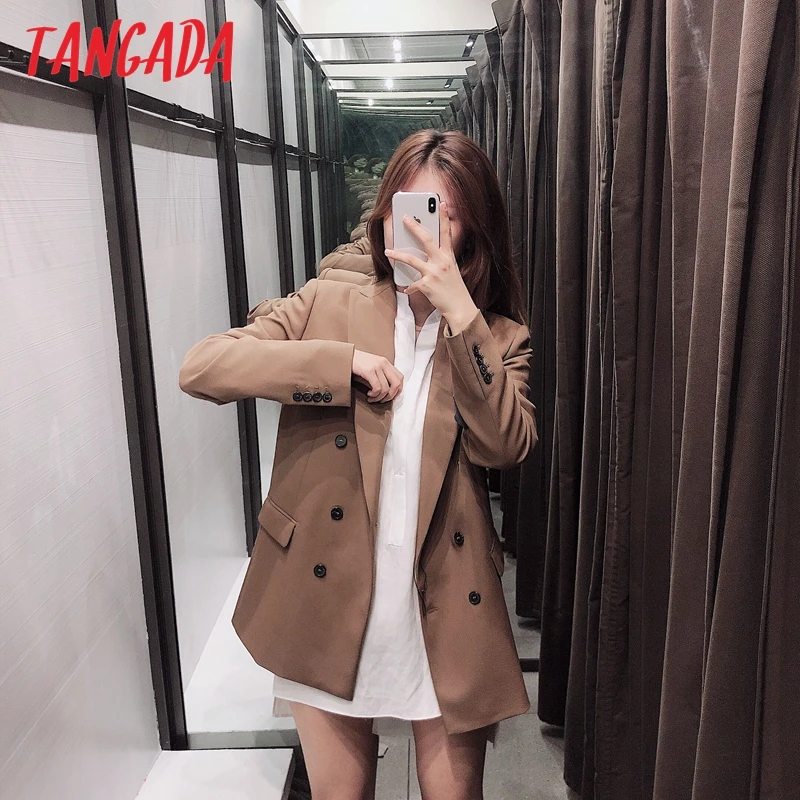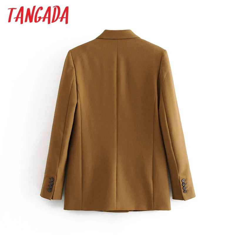 Special Offer Tangada women brown solid double breasted suit jacket designer office ladies blazer pockets work wear tops 3H42 Discount 30% Today!