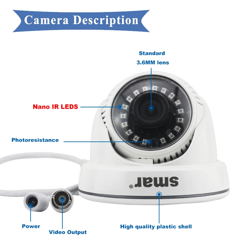 Product Name: Smar HD 720P 1080P AHD Camera 2000TVL AHDM Camera 1MP 2.0MP Indoor Security Dome Camera IR Cut Filter Plastic CCTV Home